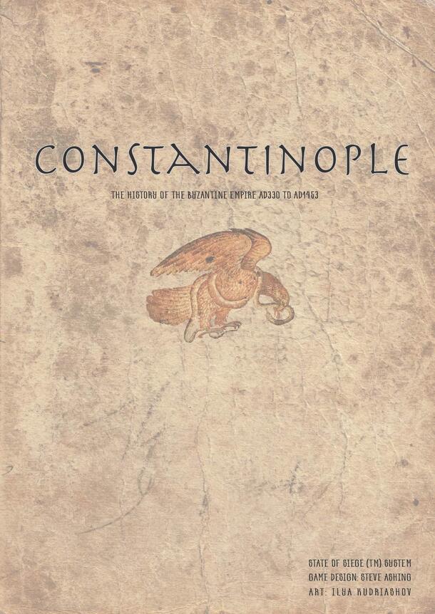 Constantinople is a solitaire wargame system covering the Byzantine (or Later Roman) Empire in the late 7th and early 8th centuries, the era of the two Barbarian sieges of the great City of Constantinople (AD 672, 717). The player controls Byzantine and allied forces. The game system controls various barbarian forces: Caliphates of Egypt, Syria and Mosul...
