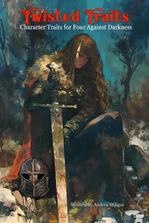 Twisted Traits is a collection of random character traits for the eight core classes found in Four Against Darkness. Each class (warrior, wizard, cleric, halfling, dwarf, elf, rogue, barbarian) has a d20 list of traits, and a list of rare traits. Most traits give a little edge in a specific situation or character development area, or give additional...