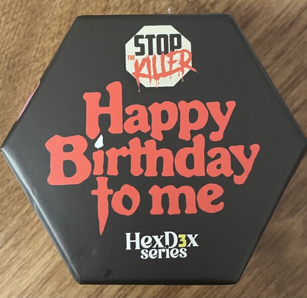 Happy Birthday To Me is part of the Stop the Killer Hex Dex Series of games themed to the 1981 horror film. To win this solitaire game, you must correctly match the edges of the hexagonal cards before the sixth Kill card appears. Rule variations allow for easier or more difficult gameplay. The Hex Deck Includes 6 Logo cards, 60 cake cards, and 6 Kill Cards...