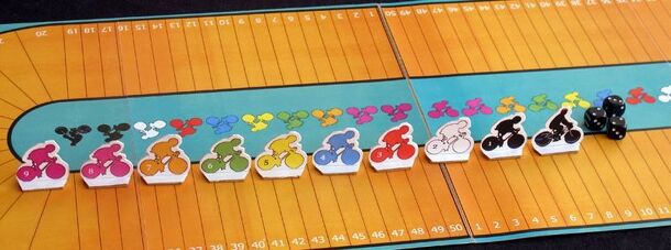 This game is a simulation of a Keirin indoor track cycling race although it can in theory be played with multiple players who can place bets on the outcome of the race. Keirin is a sport where the riders are following a derny (a motorcycle) before they are released in their race. The game is played with 6 riders and 6 different colours and a derny...