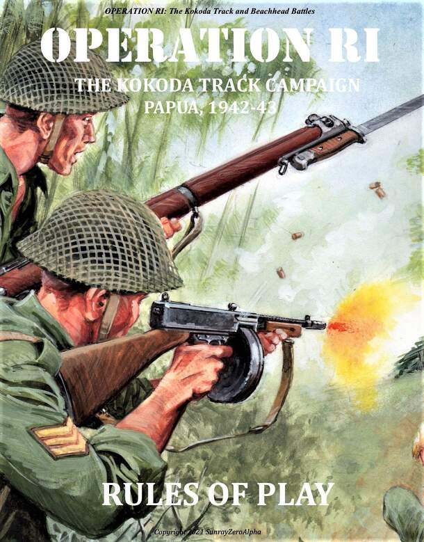 Operation RI is a print and play wargame of moderate complexity for one or two players, simulating the Japanese overland advance on Port Moresby in 1942 and the subsequent Allied counter-offensive. Components (need to be printed, the counters require assembly): Rulebook Charts and tables Set up cards 2 x maps (recommended print size 11" x 17" each) 1 x...