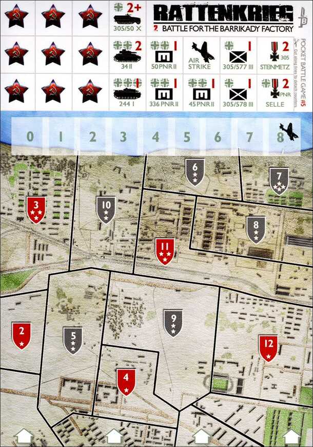 This is the first game in the TPS line of the Pocket Battle Games series from LPS, Inc. A solitaire postcard game of the intense fighting for the Tractor Factory in the Battle for Stalingrad. The player takes the role of the Germans as he maneuvers panzers, infantry, and elite pioneers into the ruins to hunt down the Soviets. Ambushes, snipers, and tough...
