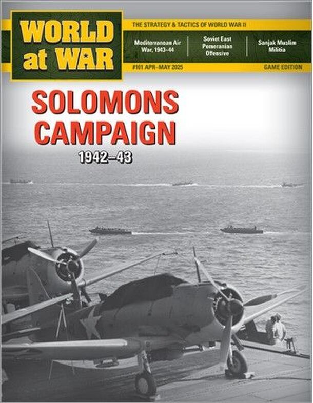 W101 Solomons Campaign is a solitaire game covering the campaign in the Solomons in 1942-43, during and after Guadalcanal. The player controls US forces, while the game system controls the Japanese via random actions. Ground units on both sides are regiments and battalions, air units are wings or squadrons, and naval units are individual ships in the case...