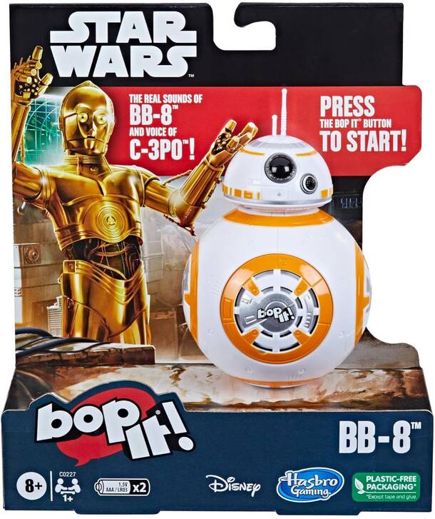 This small Star Wars edition of the classic Bop It! game features the franchise's beloved character The Mandalorian The Child. The game commands you to Bop it, Twist it, Pull it, in the voice of The Mandalorian and you have to respond as fast as you can. If you get it right, you get another chance, but if you don't, you're out! The commands get faster the...