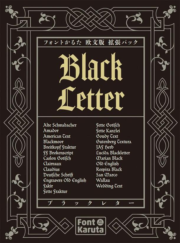 Font Karuta Black Letter is a real-time competitive game themed on font types. Spread out the cards with the same set of letters in different fonts on the table. After a font name is announced with a clue, players race to find and take the matching card. At the end of the game, whoever has the most cards wins. Mechanics: In addition to the players, a...