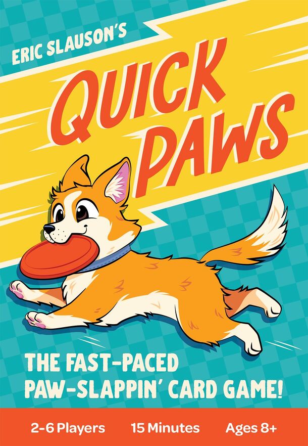 Quick Paws is a fast, silly game of matching, reacting, and racing to perform tricks. Players take on the roles of excitable pups playing in a crowded dog park. They will flip cards one at a time to separate piles, keeping their eyes peeled for matching “tricks”. As soon as two matching trick cards appear, it's a frantic dash to be the first to shake...