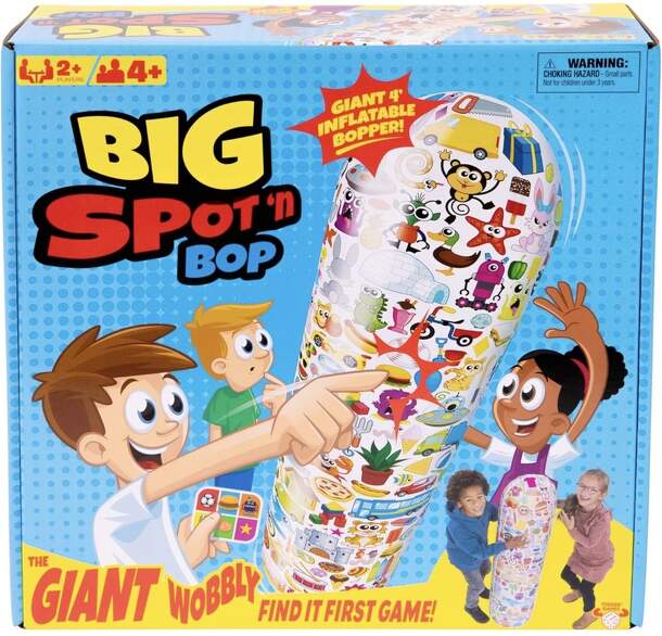 The hunt is on! Big Spot ‘n Bop is the crazy game with the giant inflatable tower of fun! Spin the spinner to see if you’ll race against the clock, go head-to-head, or if everyone plays at once. Pick a color, flip a card and see if you can spot ‘n bop the matching item! You might be chasing a mouse, a monster or an alien. A pup, a pug or a hot dog! They're...