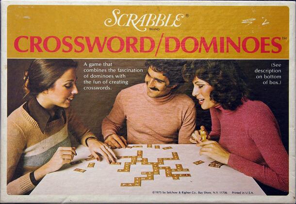 From the back of the box: An exciting new way to play with words. Letters, instead of dots, turn this popular classic into a dashing, two-dimensional game. Using basic domino rules, the object of the game is for players to take turns placing their lettered tiles "domino fashion" to build words and create a domino crossword. Play ends when one player uses...