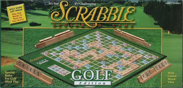 From box bottom, "Tee it up! It's a golf word scramble! Score Birdies and Eagles on the fairway and you'll double and triple your score!!! Increasing your golf score may not be good for your handicap, but it's a great strategy in the SCRABBLE Game: Golf Edition. Take the challenge of this specialty version of America's favorite word game one step further;...