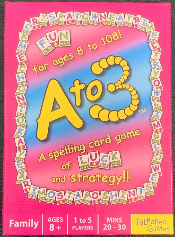 In each round of A to 3, each player draws 10 letter cards and tries to form them into words for the highest score. The score is the sum of the values of all the letters used, plus the values of the first letters of each word, plus bonus points if all 10 cards are used, the bonus being higher if there are just 1 or 2 words made. The value of each letter...