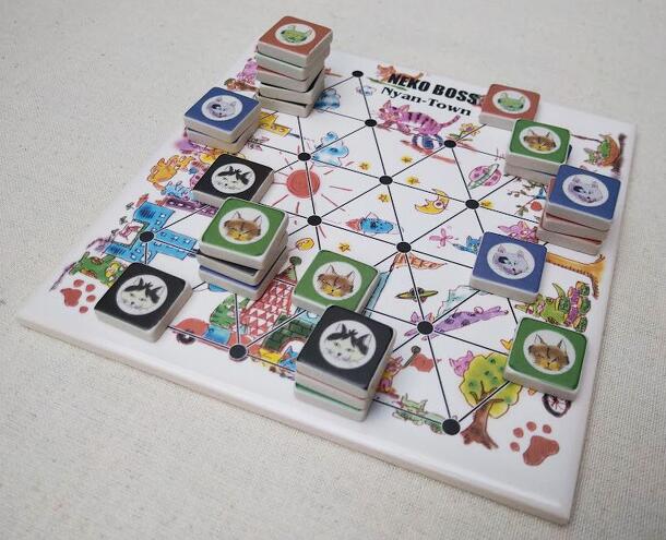 Neko Boss is a fun abstract cat game. Players need to move their cats around Neko(cat) Town to take control of the streets. When the cat stack grows those cats can travel further. Also, the top cat on the stack is the one that controls that stack of cats. Basic rule for standard edition. Board is consist of 24 intersections and paths. At first to decide...