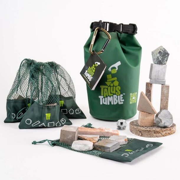 Players start with identical sets of six stones in different shapes and sizes. Players take turns rolling a 12-sided die, which may designate the stone to be placed, or require the removal of stones, or require that a stone or stones be placed in a certain way, etc. The first player to place all of his or her stones without causing a tumble wins the round...