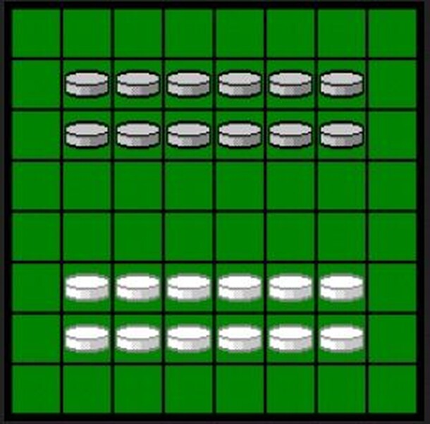 A Checkers-like game that uses linear movement. Men can move straight or diagonally forward. Similarly, a line of men can advance as a group straight or diagonally forward. Kings move like a queen in Chess. Men and kings capture orthogonally only. Kings can capture at the long range. Maximum capture is enforced. Since men can move over other men of their...