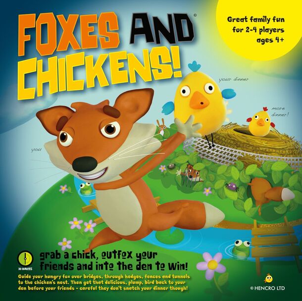 The object of the game is the first player/fox to get one chicken back to his den wins the game. How to play: Place the chickens in the coop in the center of the board . each player takes 3 foxes and places them in their den marked on board. Throw a 6 or 1 to get a fox out of den. Throw the dice and move on that number of squares in a clockwise...