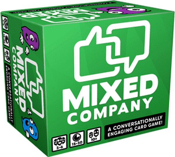 Mixed Company is a conversationally engaging card game. How to Play: 1) Create Your Question Card Deck Choose from Question Cards including All Ages, 16+, NSFW, or other expansion packs, to put together a variety of questions for your group. 2) Deal out the cards Deal out Question Cards, Trophy Cards, Action Cards, Challenge Cards, and Vote Cards to each...
