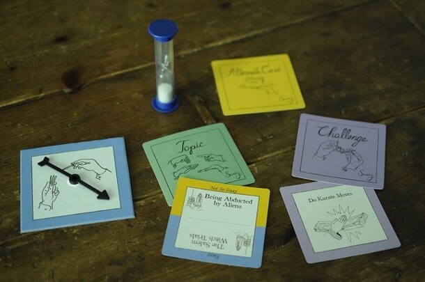 Description from the publisher: A hilarious party game in which players go head-to-head in debates about totally different topics. Challenges like "Speak Like a Pirate" and "Do Yoga Poses" add to the fun. Compact and easily portable, small enough to fit in a medium-sized purse or hold in one hand. Includes 500 Topics, 75 Challenges, 1 Alternate Case card...
