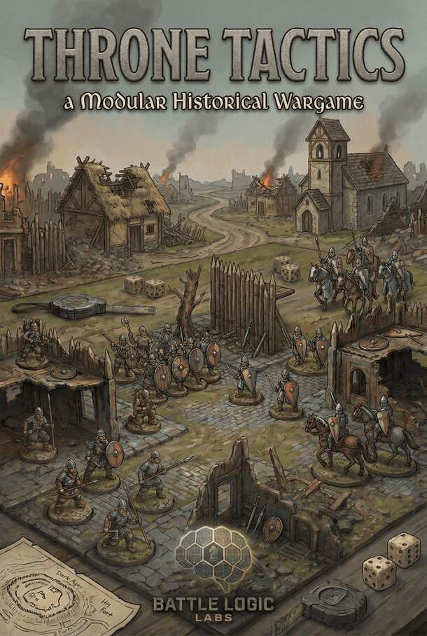 Throne Tactics'' is a high-stakes, miniatures-agnostic tabletop wargame designed to bring sweeping maneuvers and brutal clashes to your tabletop. Whether you command a raiding party of the Dark Ages, a disciplined Roman Legion, a thundering Macedonian Phalanx, or a desperate Crusader host, Throne Tactics provides a streamlined, tactical engine that rewards...
