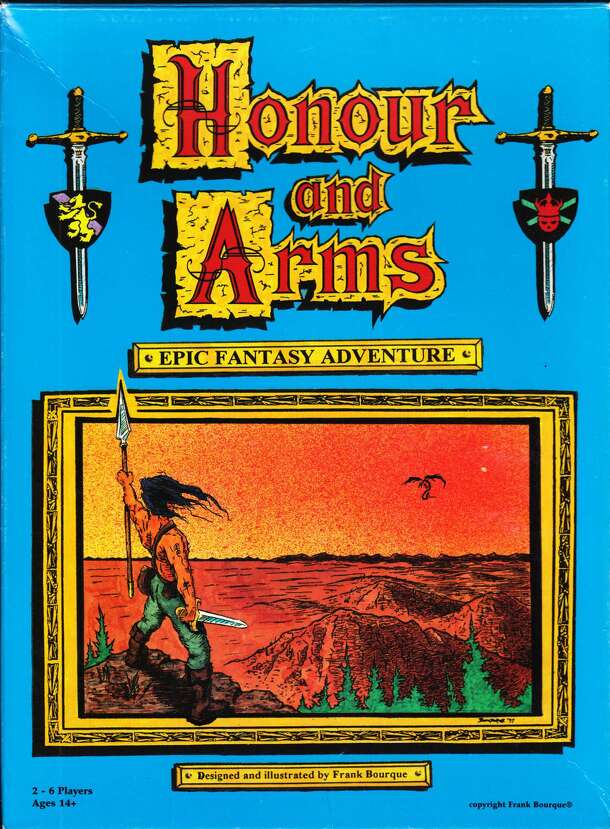 Honour and Arms is a fantasy adventure game played on a map of a small unnamed region. Each player controls a character; there are 16 characters supplied, differentiated by their values in six different traits, their special abilities, and their alignments. On a turn a player rolls a die for their number of movement points and then moves from space to...