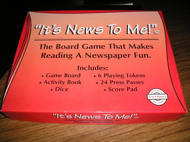 From Back of Box: With "It's News to Me!" the race is on to the editor's office in a new "unbored" game that has players pretending to be reporters on assignment. "It's News to Me!" sparks student imagination and interest in today's world. The game challenges students to complete tasks that incorporate every aspect of the Newspaper. The ACTIVITY BOOK...