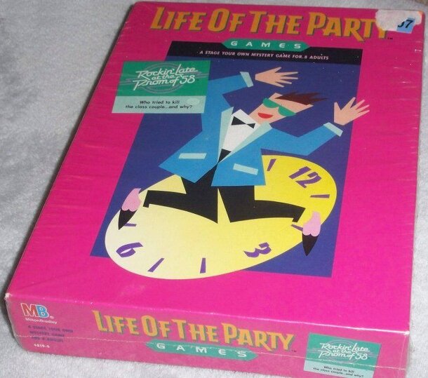 Milton Bradley produced 8 mystery party/role playing games (in the vein of How to Host a Murder) in 1987. They were all called "Life of the Party" games, four mysteries and four murders. The back of all boxes indicates that these are also copyright Jamie Swise Games, as that outfit produced several of their own titles (and several, if not all, of these) a...