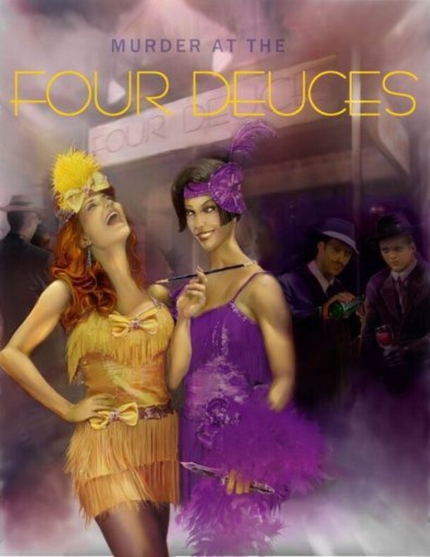 from the publisher's website: Murder At The Four Deuces is a 1920's gangster murder mystery game with a murder, bribery and back stabbing to be had. Some of the guests will include gangsters, politicians, singers and gamblers. Don and MeMe Wannabe are hosting the grand opening celebration of their new club The Four Deuces and you are invited to attend. The...