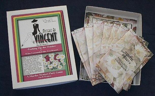 How to Host a Murder styled party game. No audio comes with these games, just clue booklets and party planner. Designed for a women-only setting. PUSHING UP THE DAISIES -or- Who Grounded the Gardener? It's September 15, 1942. The Andrews Sisters and Glenn Miller are be-bopping over the wireless, and women's hemlines are just a little bit higher than they...