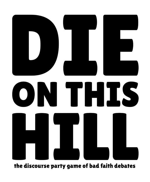 Die On This Hill is a party game about making, refuting, and reacting to the hottest takes anybody has ever seen. It’s like social media, but, y’know, fun. Each player is dealt a hand of "debate" cards with various things on them, ranging from "A Sandwich" to "Gen Z" to "A Giant Mech" to "Forcing Your Child To Open A Can Of Beans". Players use those cards...