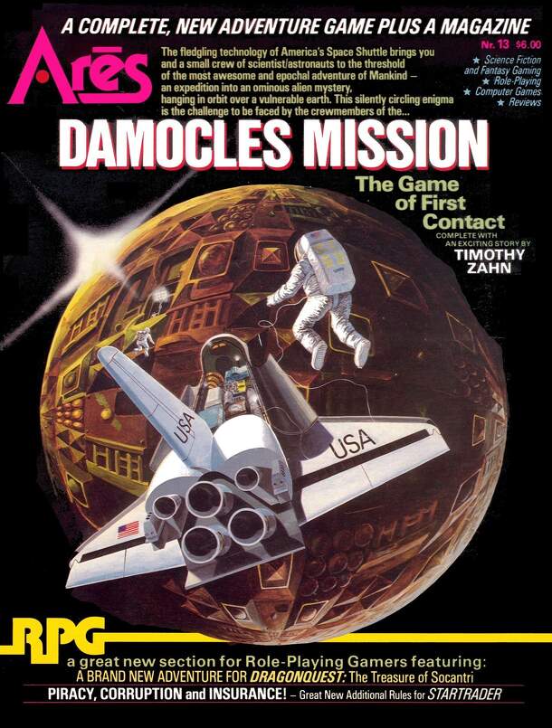 Ares Magazine #13. On 15 September 1988, a dark spherical object approximately 1.2 kilometers in diameter of unknown origin assumed a geosynchronous orbit over the Galapagos Islands. Upon orders of the president, an investigating shuttle mission was configured (code name Damocles)... Damocles Mission is a solitaire paragraph based game to explore the alien...