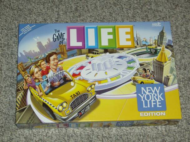 Description from the publisher: The company you keep has teamed up with the Game of Life to bring you the New York Life edition of the classic board game. Will you attend college or start a career? Invest in retirement certificates along the way or try you luck in the market mania? Visit the Statue of Liberty on your quest to win the game with the most...