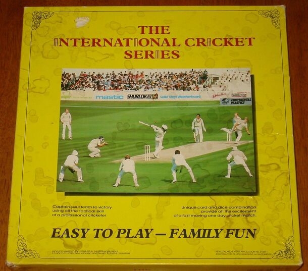 From the box lid: "Captain your team to victory using all the tactical skill of a professional cricketer. Unique card and dice combination provide all the excitement of a fast moving one day cricket match. Easy to play - family fun." This game is themed around the one-day cricket phenomenon that became popular in the late 70s, although the board game lasts...