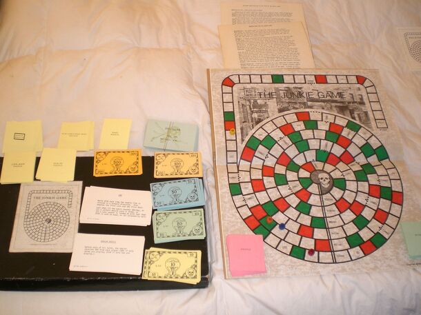 An educational board game made to illustrate the destructive nature of addiction. Its mechanics are described by the author as a reverse of games like Monopoly; instead of acquiring wealth, the players lose money, their job, and their possessions throughout the course of play. From the author's own description: "Up to [seven] players play at being heroin...