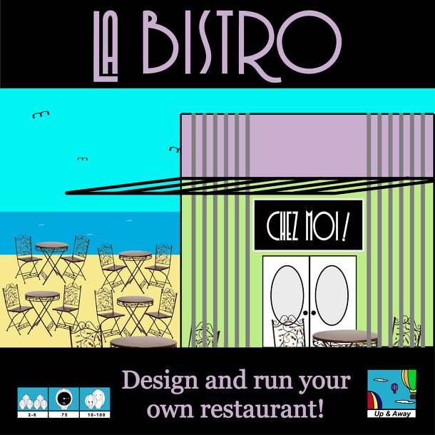 Description from the publisher: In LA BISTRO each player starts with a small stake that they use to build up their restaurant and then with profits decide how much to invest further, either in improvements to counter what the opposition are doing or to create a second restaurant. Simultaneous actions to take in this game: Choose a building in one of six...