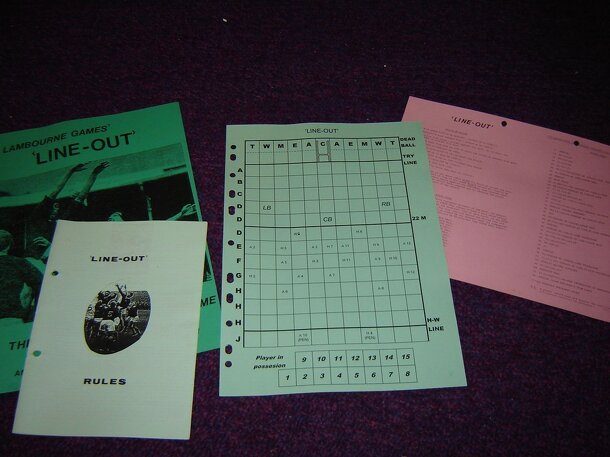 "Line Out" is a replay simulation of Rugby Union. Teams are rated for Attack and Defence plus their ability in set scrums, rucks, loose mauls and line outs. The game recreates the 'highlights' [potentially dangerous attacks] of a match based on the attach / defence ratings of the teams. When either team's Attack number is rolled a simple procedure...
