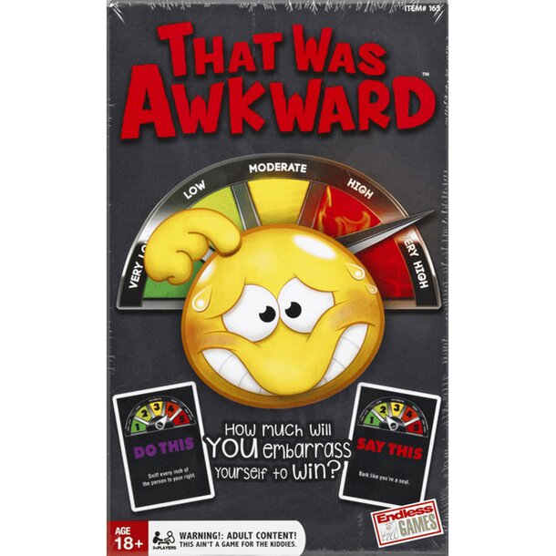 How awkward are you willing to look in front of your friends to win the game? Will you pretend you are hula hooping while talking like you're drunk? Keep periodically sniffing your finger while describing the boldest thing you've ever done while you were naked? Players take turns doing something ridiculous while saying something equally absurd. But you'll...