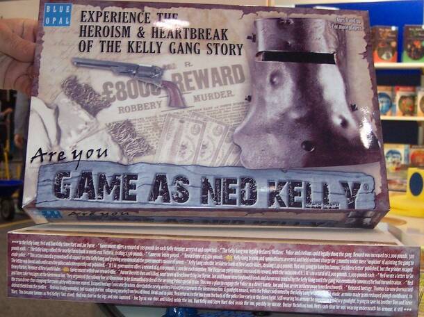 Roll and move game played as two teams: the Police, and the Kelly Gang. The police aim to capture the Kellys and put them in the Old Melbourne Gaol; the Kellys aim to give away all their money (13 £1 notes) and escape to New South Wales. The game incorporates action cards that often have dramatic effect on the gameplay and most of the cards are adorned...