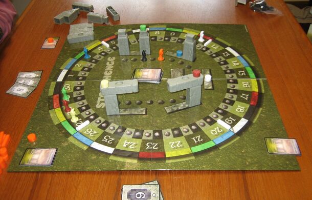 Sun & Moon is a building game designed for Stonehenge: An Anthology Board Game and its Nocturne Expansion. It is for two teams of 1, 2, or 3 players (in other words, it's a game specifically for 2, 4, or 6 players). One team represents the sun cult (orange); the other, the moon cult (black). The players sit around the table such that the turns will...