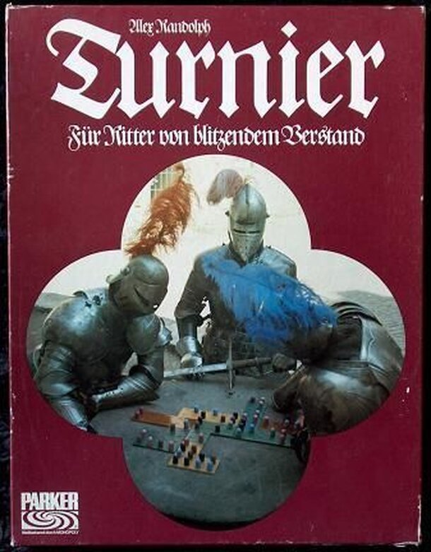Quite similar to Checkers. It is played with 4 sets of 18 pieces ("knights") on 8 boards (4 straight, 4 L-shaped) with 12 holes on each board. The goal is to hold three of the boards by removing the opponents' pieces from them. Players take turns by moving one of their pieces either one hole horizontally or vertically, or jumping over their own or...