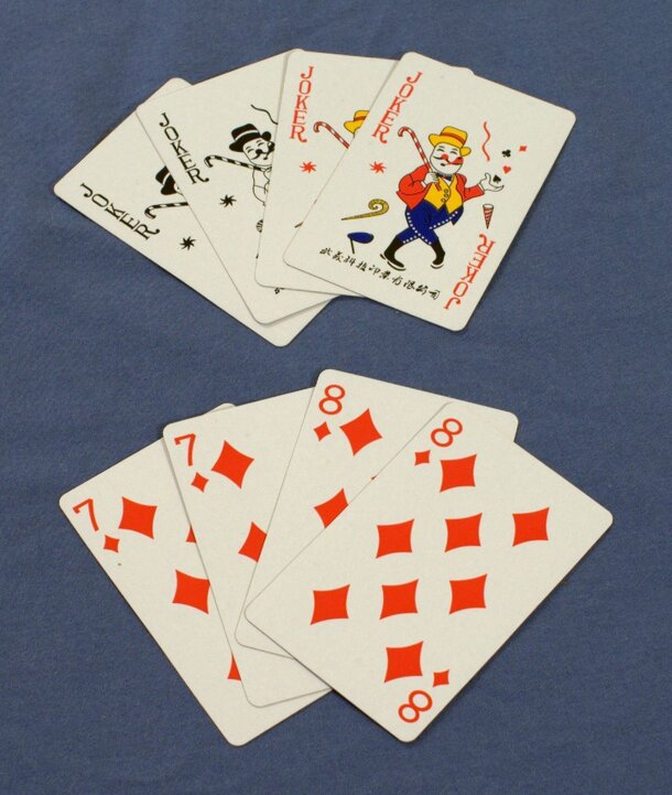 This game is known in Chinese as tuo la ji (拖拉机) (meaning 'tractor') or bashi fen (八十分) (meaning '80 points'). It is an expanded version of sishi fen ('40 points') using two or more decks, and is related to zhao pengyou ('looking for friends'). All these games are collectively known as Sheng1 Ji2 (升级), which means "raise level" or "promote". Tractor is...