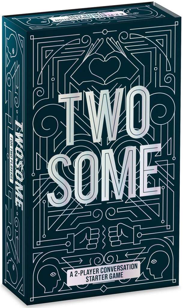 In Two Some, you and another player answer the ultimate "me or you" questions to see how well you know each other, either playing with just the two of you or going head-to-head against up to three other couples. Each round, two cards are revealed to the group, such as "avoid when hungry" and "better poker face", or perhaps "laughs at own jokes" and "knows...