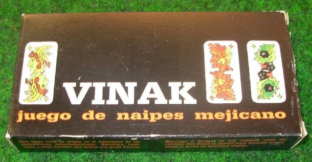 Vinak is an old Mexican word for the 20 day calendar cycle used in the Toltec culture. The 43 cards used in this game are: - 24 moon calendar cards (6 cards in 4 colours) - 18 sun calendar cards (numbered from 1-18) - 1 Vajeb card representing the "serenity of the year" The game is a trick taking game for 3-4 players. According to the introduction of the...