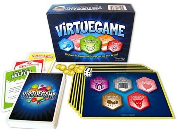 To win the game, kids have to earn five out of the ten virtues by completing the tasks described on each card they draw. For example, a "Thankfulness" card asks the player to hold their breath for as long as they can. When they are finished, they card asks; "Aren't you thankful to breathe again?" and reminds the player to be thankful for things that we...