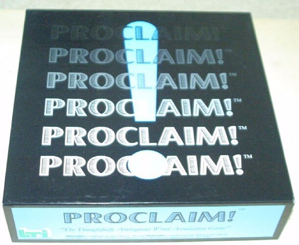 Players take turns giving clues to their fellow participants. Clue givers try to construct one-word clues that will lead others to guess the Proclaim! word. There are up to 3 rounds for each word, and the earlier the round, the more points that are awarded to the clue givers and correct guessers. The more people that guess the correct Proclaim! word, the...