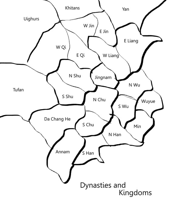 print and Play Board Game/ Strategic War Game for 2-6+ players. Five Dynasties and Ten Kingdoms Period of Chinese History circa 907-960 CE. The map has 23 Provinces five of which are considered to be barbarian provinces - the others being the 10 kingdoms (some of which cover 2 provinces). Other components are a standard deck of 52 cards, six sided dice and...