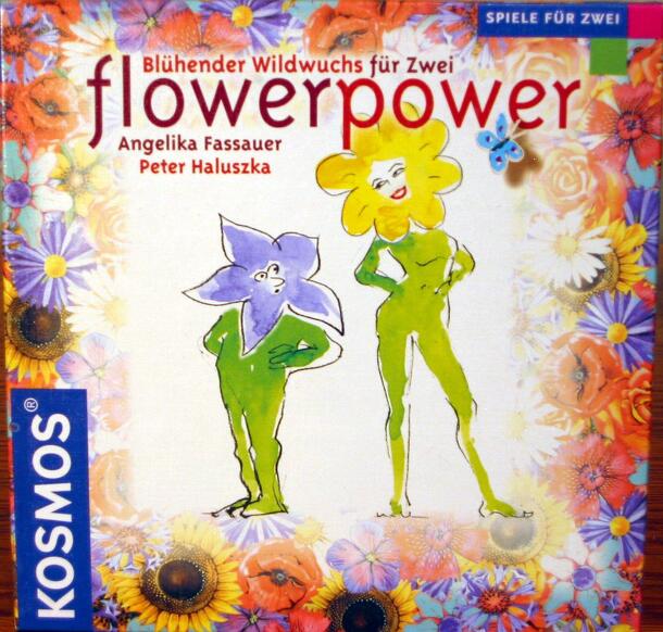 A beautiful tile-laying game where players strive to build large plots of single variety flowers. The larger the plot, the higher the score. Players plant their own gardens but also compete in a central connecting strip. Players also get the chance to plant weeds into the opponent's garden, spoiling their best laid plans. Flowerpower is part of the Kosmos...