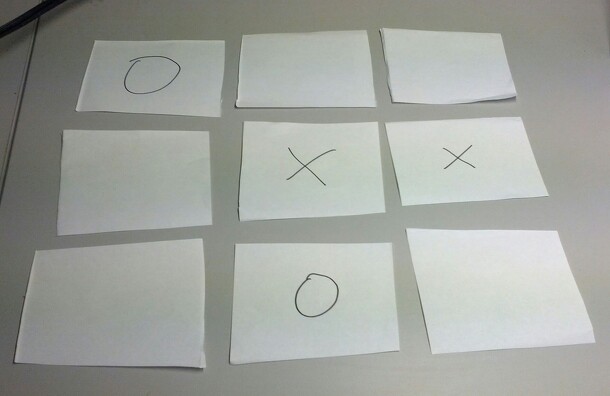 Folium is a minimalist abstract game for 2 players, inspired by Babylon. You only need a blank sheet, a pen and scissors to play. Cut the sheet in nine fragments. Place them on the table, three rows of three fragments each. Each fragment is called a pile of fragments. On each turn a player may: -mark a fragment with a symbol (cross or circle; players are...
