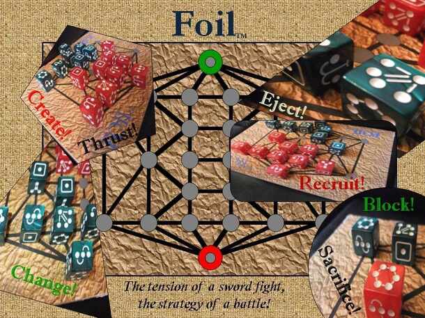Foil is a board game primarily for two opponents. However, the board design allows configurations for more players. Each player has a source node from which his/her pieces originate. The object of the game is to remove the opponent's piece on his/her source node. Each piece is a six-sided dice, where each face represents a state. A turn consists of a...