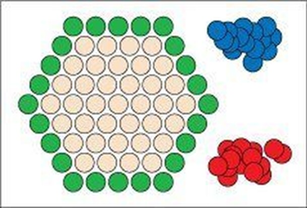 Hex hex Flume is a very simple game for two players, played on a hex hex board lined with a perimeter of green stones (or green, stone-sized stickers). Two players, Red and Blue, take turns adding stones of their own color to the board. If you add a stone which forms 5 or 6 connections (adjacencies) with neighboring stones of any color (red, blue or green)...