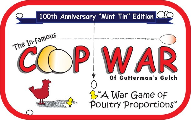 The In-famous Coop War of Gutterman's Gulch is a mock war game in which both sides are trying to defeat each other by means of depleting their opponent's egg supply or trying to accumulate the majority of the nine hens into their coop. Players will alternate six turns per round. Game play revolves attack and production cards. Attack cards cause an opponent...