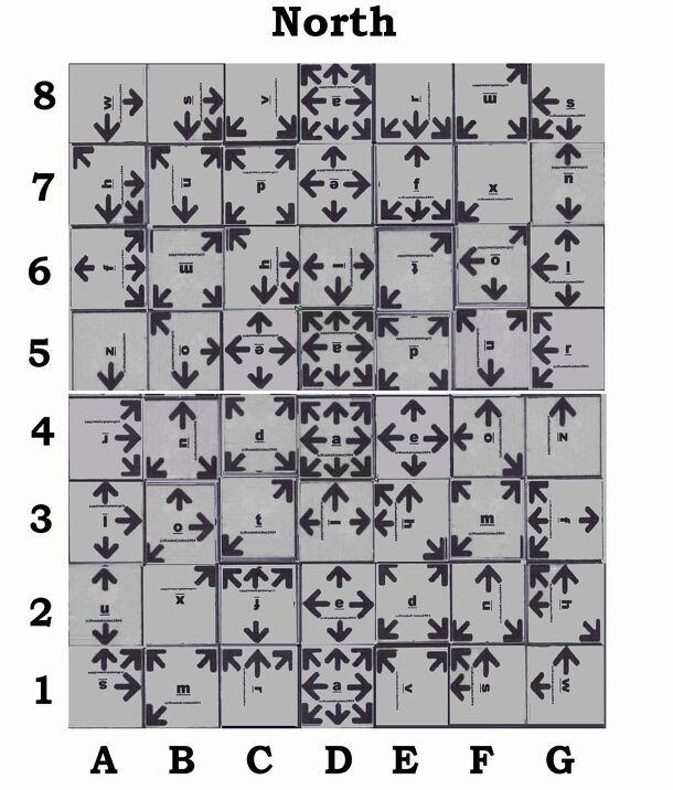 KETTERING is a 2 player Strategy game played on a chessboard, masked to 7x8, and using "KETTERING CARDS" -- tiles with arrows which are placed on the chessboard at the start of play to create a gameboard with a unique flow for every game. The object is to be able to capture your opponents KETT - a King type piece. There are 4 types of pieces:- KETTS...