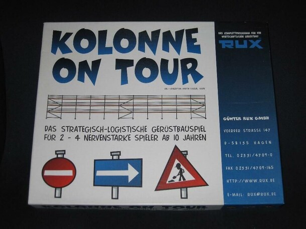 Each player has 3 trucks and wants to transport material (card board chips) to construction sites. Movement is on a board with a street net by one chosen die out of 5. Next player must choose out of 4 dice and so on. A construction site will be scored if all necessary materials are brought or even earlier, if the lead for the majority is unchangeable....